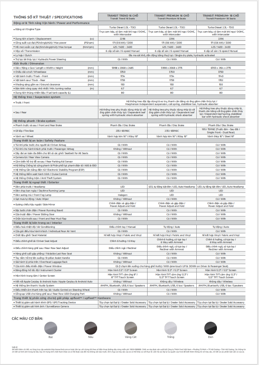 Ford Transit Premium+ 18 chỗ new 2025
