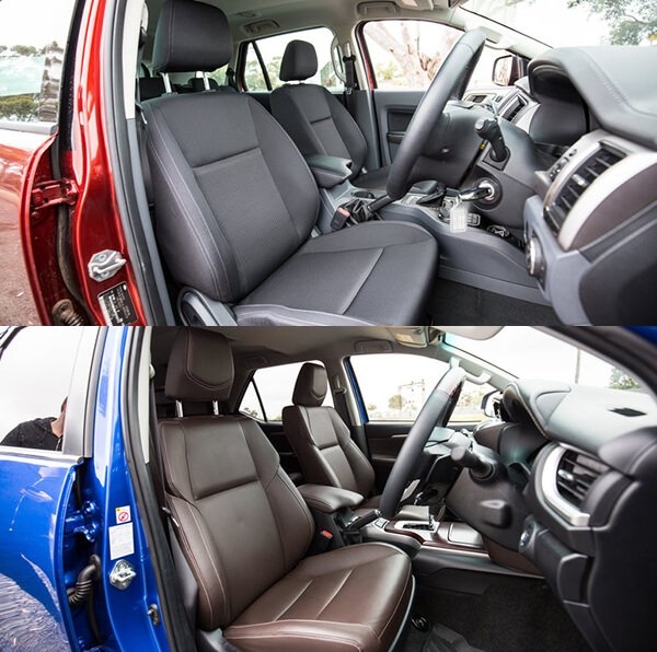 Ghế lái và ghế hành khách của 2 mẫu xe đều có chỉnh điện 8 hướng. Hàng ghế thứ 2 của xe gập 60:40, hàng ghế thứ 3 gập 50:50. Riêng Ford Everest các ghế ngồi đều gập điện dễ dàng và nhanh chóng, đồng thời vị trí hàng ghế sau của Everest được trang bị thêm ổ cắm 12V để sạc pin điện thoại.